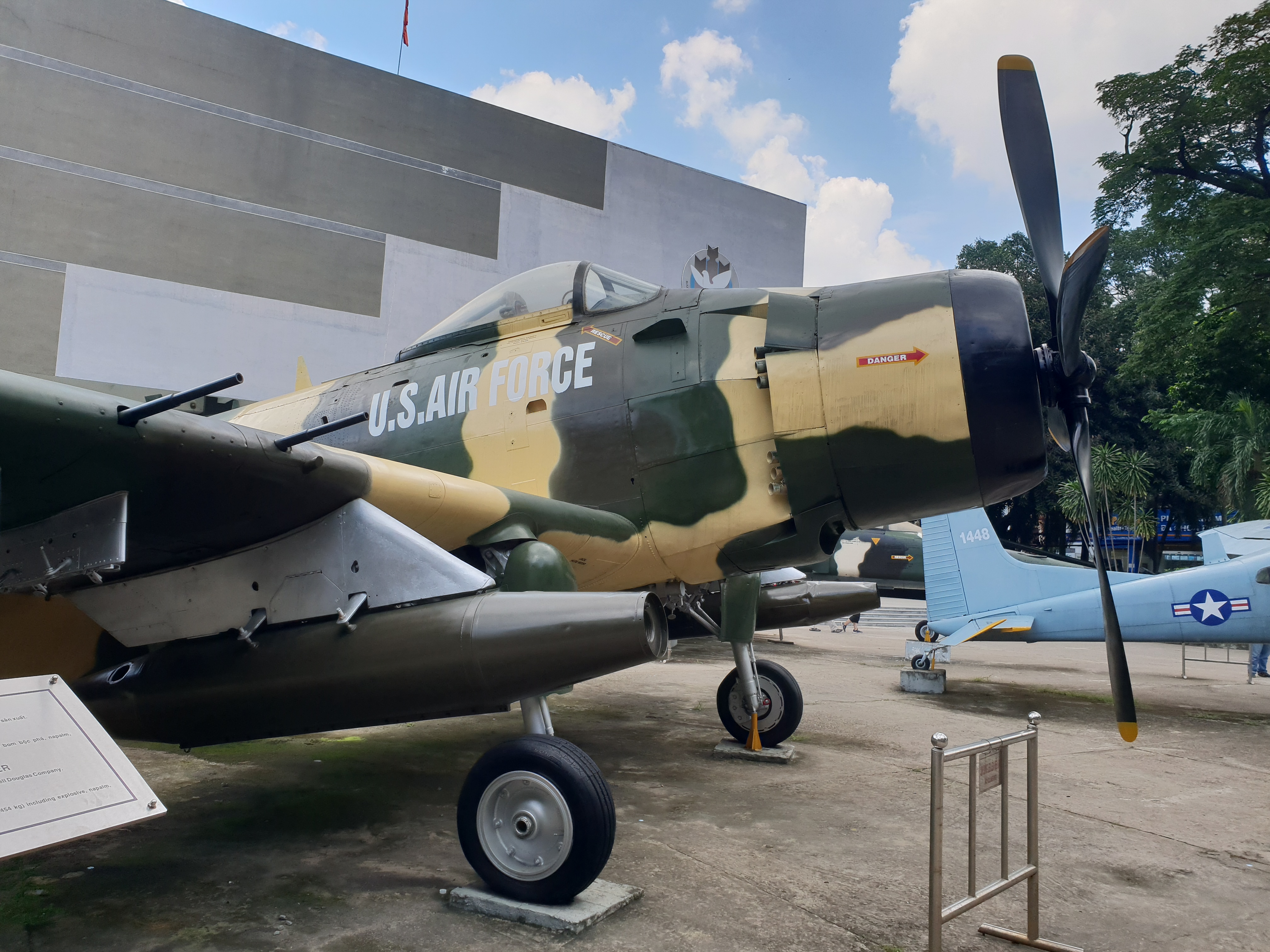 Stolz steht die Ho Chi Minh Statue vor einem stattlichen Gebäude in einem Park, das von 4 uniformierten Männern überwacht wird, welche auf Plastikstühlen sitzen, rauchen und auf ihre Handys starren. Viele Touristen stehen neben oder vor der Statue und lassen sich von ihren Begleitern ablichten.